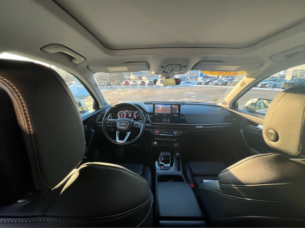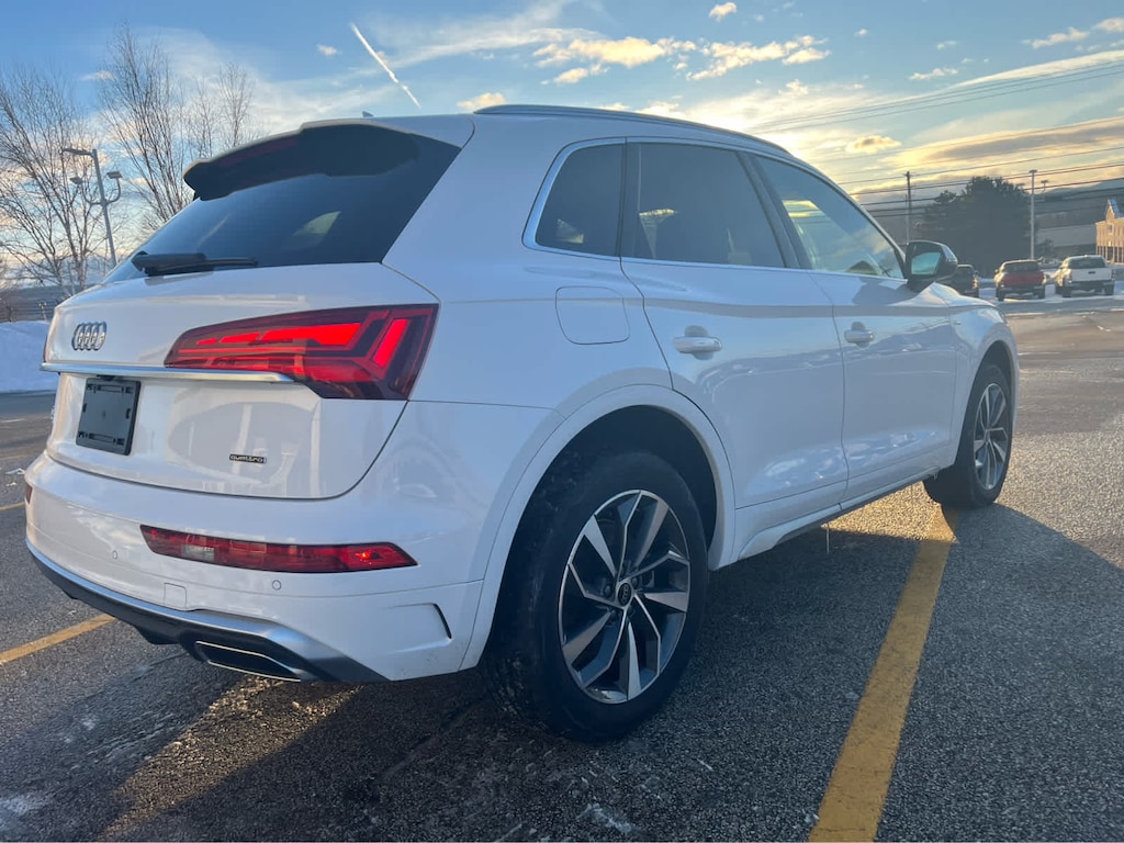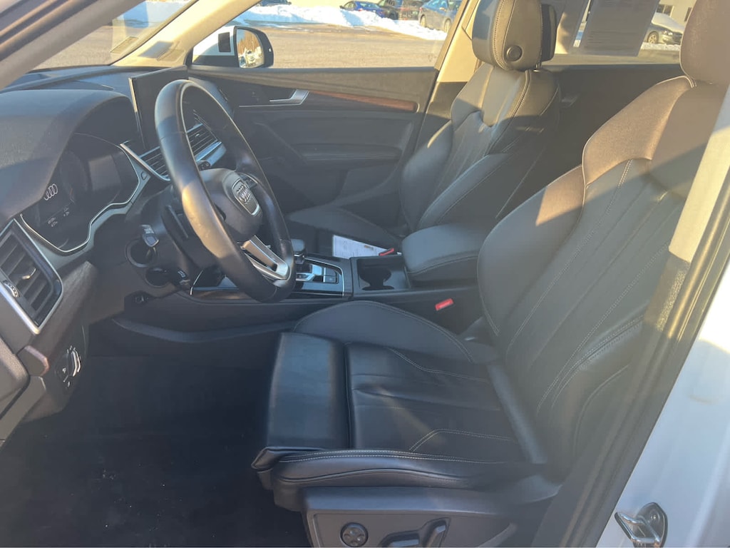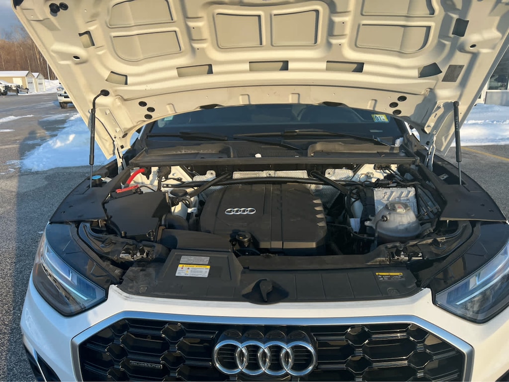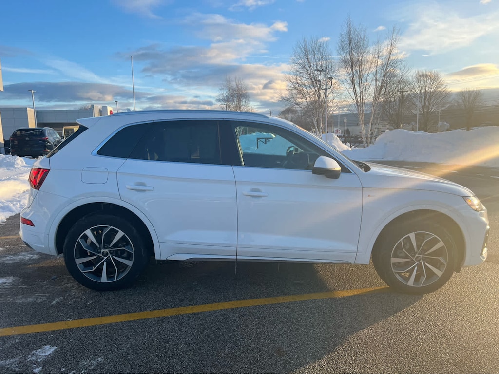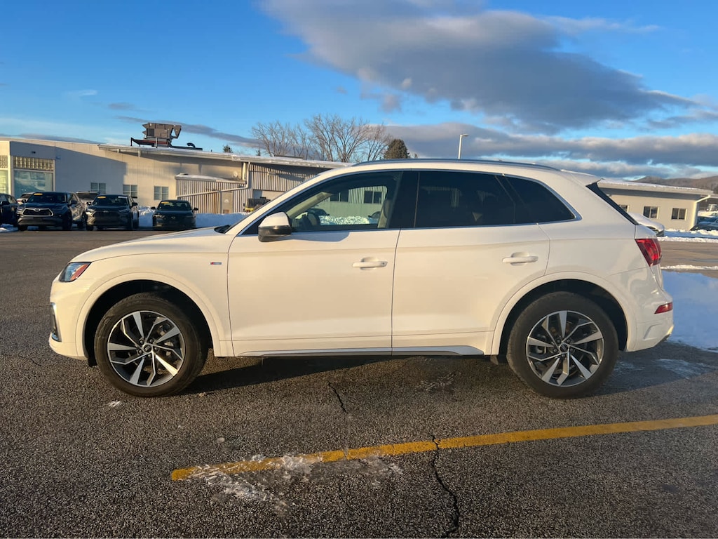 Cross-Traffic Alert, Blind Spot Monitor, Lane Keeping Assist, Child Safety Locks, Electronic Stability Control, Brake Assist, 4-Wheel ABS, 4-Wheel Disc Brakes, Tire Pressure Monitoring System Safety equipment includes Cross-Traffic Alert Audi S line Premium Plus with Glacier White Metallic exterior and Black interior features a 4 Cylinder Engine with 261 HP at 5000 RPM*.