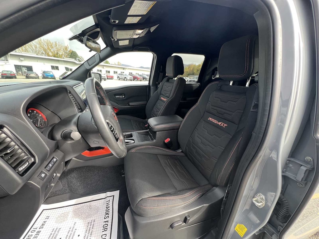 Blind Spot Monitor, Cross-Traffic Alert, Child Safety Locks, Electronic Stability Control, Brake Assist, 4-Wheel ABS, 4-Wheel Disc Brakes, Tire Pressure Monitoring System Nissan PRO-4X with Boulder Gray Pearl exterior and Charcoal w/Lava Red Stit interior features a V6 Cylinder Engine with 310 HP at 6400 RPM*.